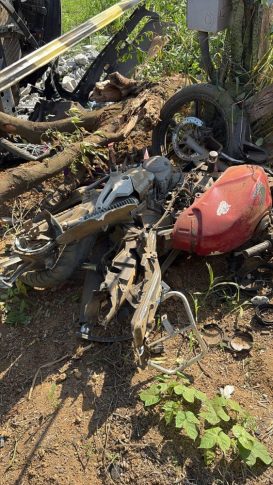 A Polícia Militar compareceu ao local para realizar o isolamento da área, preservando a cena do acidente até a chegada da perícia técnica.
