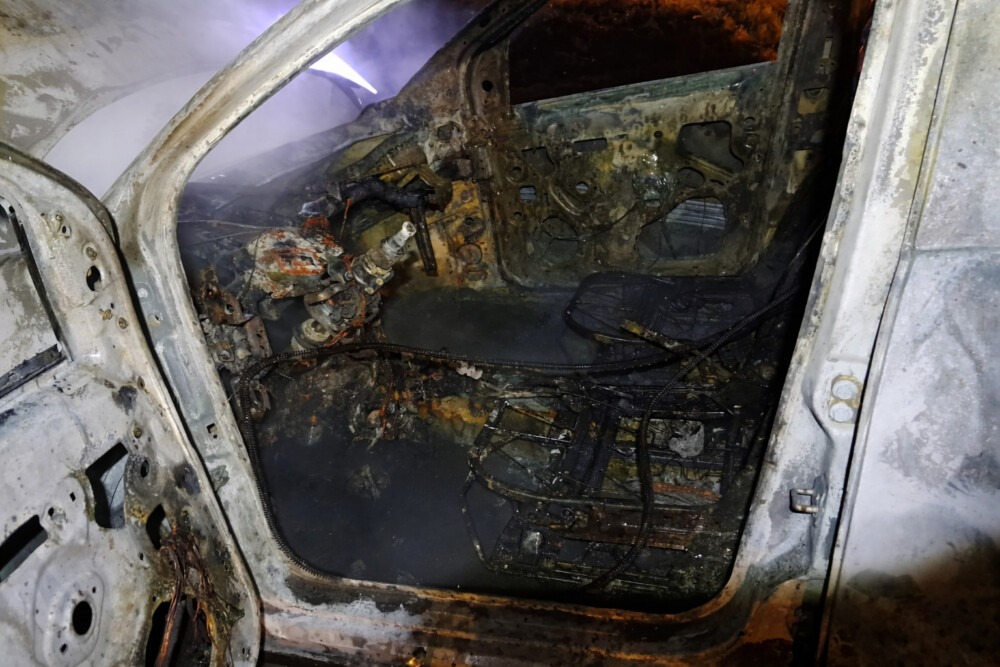 Na tentativa de eliminar provas, o carro utilizado na ação criminosa foi incendiado.