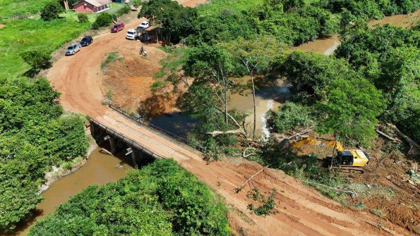A obra integra o projeto de substituição de pontes de madeira por estruturas mais modernas e resistentes, com o objetivo de melhorar o tráfego e oferecer melhores condições de acesso para moradores e produtores rurais da região.